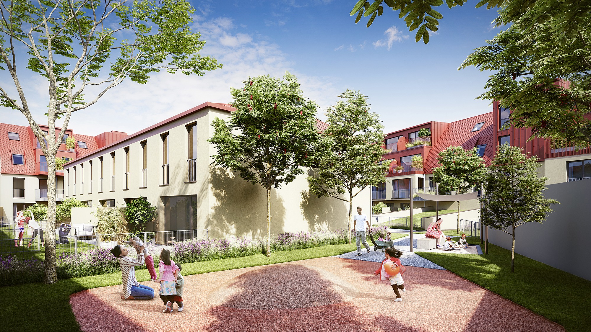 The develloper wants to create an interesting living space for all those who appreciate both: the colorful diversity of nature in an almosr rural surrounding and the diverse possibilities Vienna has to offer. The complex is a meeting zone for young and old, a home for families, couples and best agers.