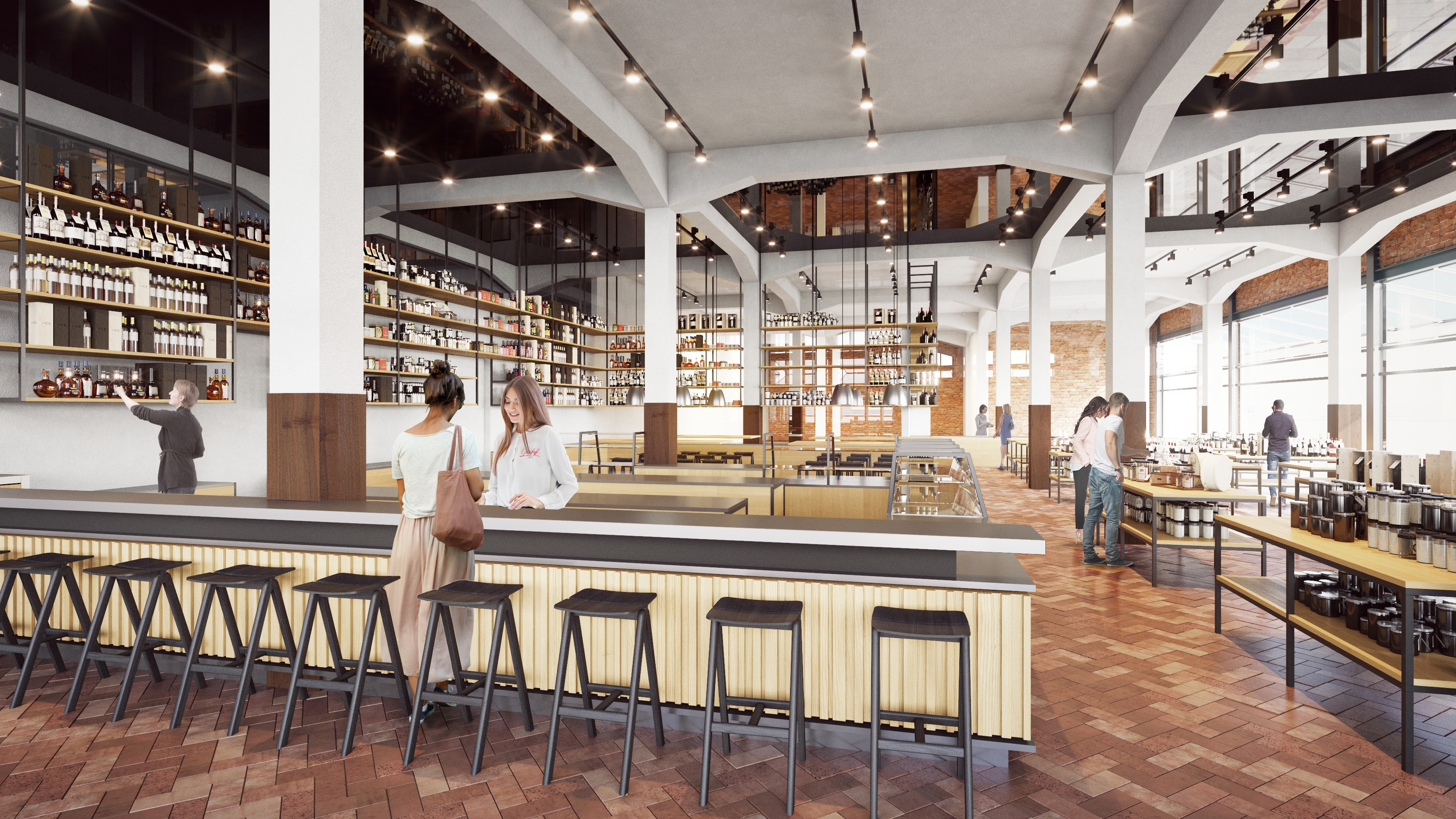 The architectural concept of DMAA, preserves the characteristic of the silos and the brick structure. Almost untouched, the existing Reishalle will be revived as a lively market place offering hip restaurants right on the waterfront.