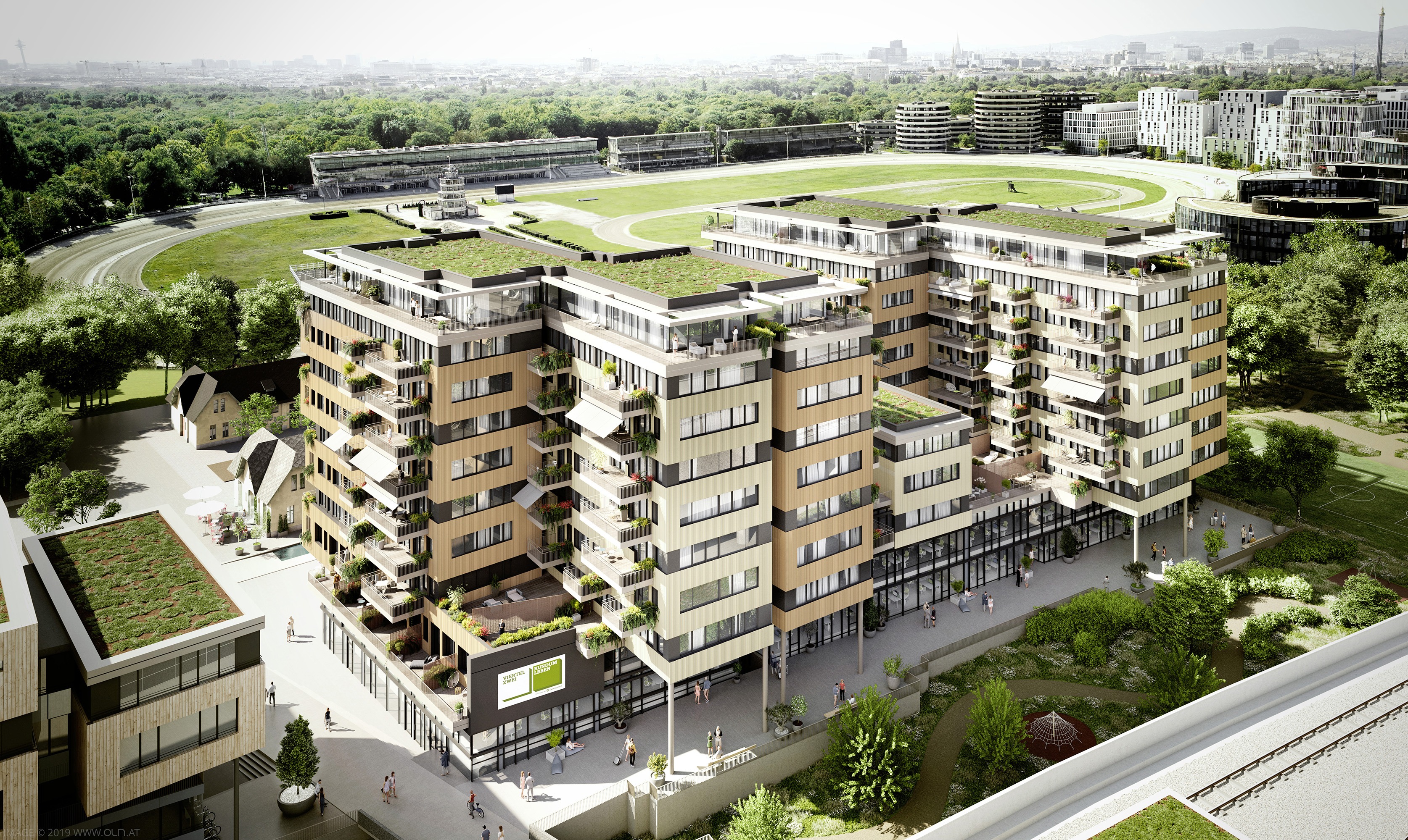 The Korso brings living to a prime location nearby “Green Prater”, in close proximity to the stadium and historic “Trabrennbahn” horse racing track. The housing project has a total of 179 occupied 2-5 room flats. An extraordinary contrast with a unique atmosphere designed by the Austrian architect Martin Kohlbauer. The project combines both, historical and contemporary architecture. It is a unique re-development, turning the listed former stables into a lively hub and meeting place at Viertel Zwei. We created film clips and visualisations of the interior and exterior of this lively, urban, and green location!