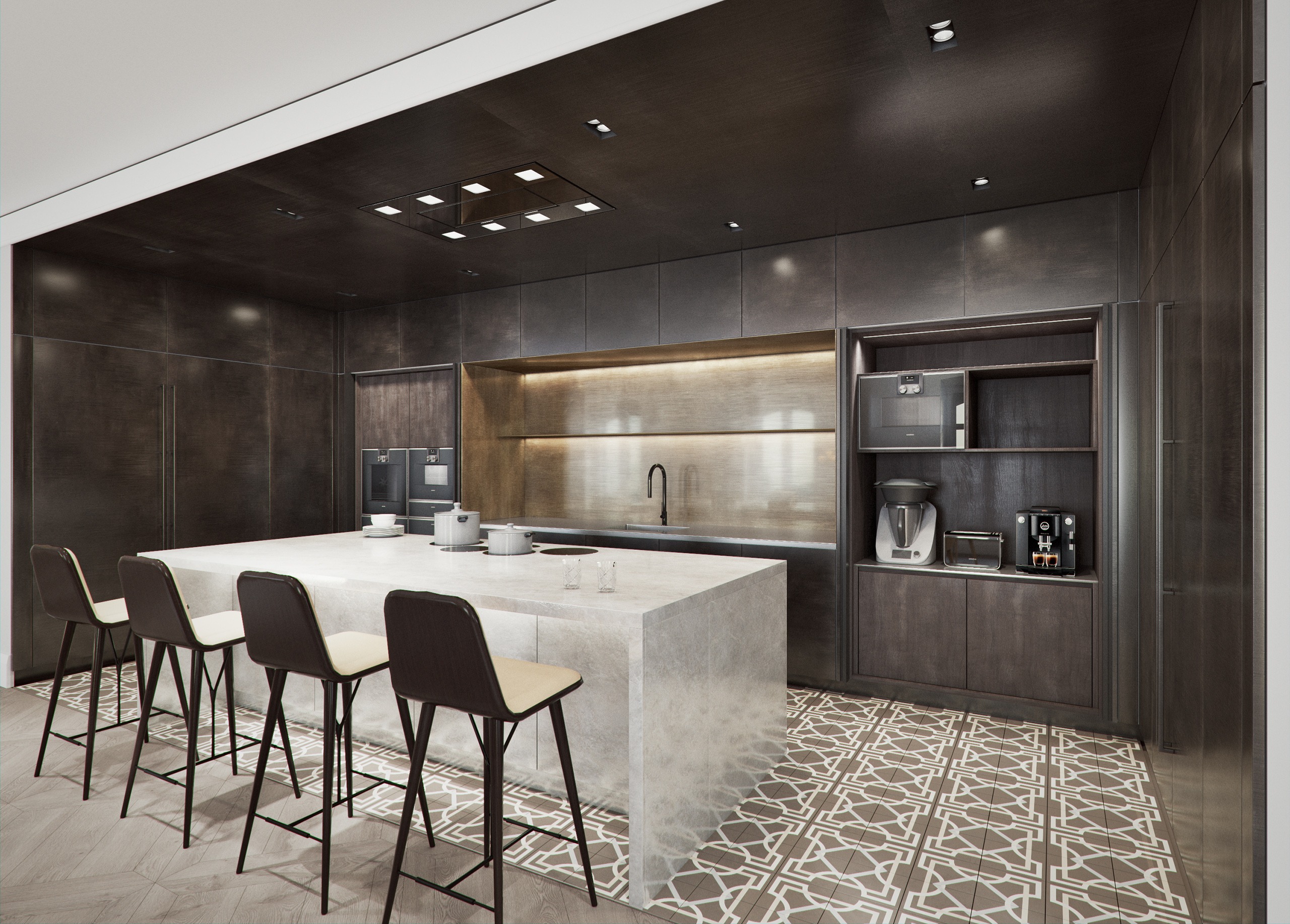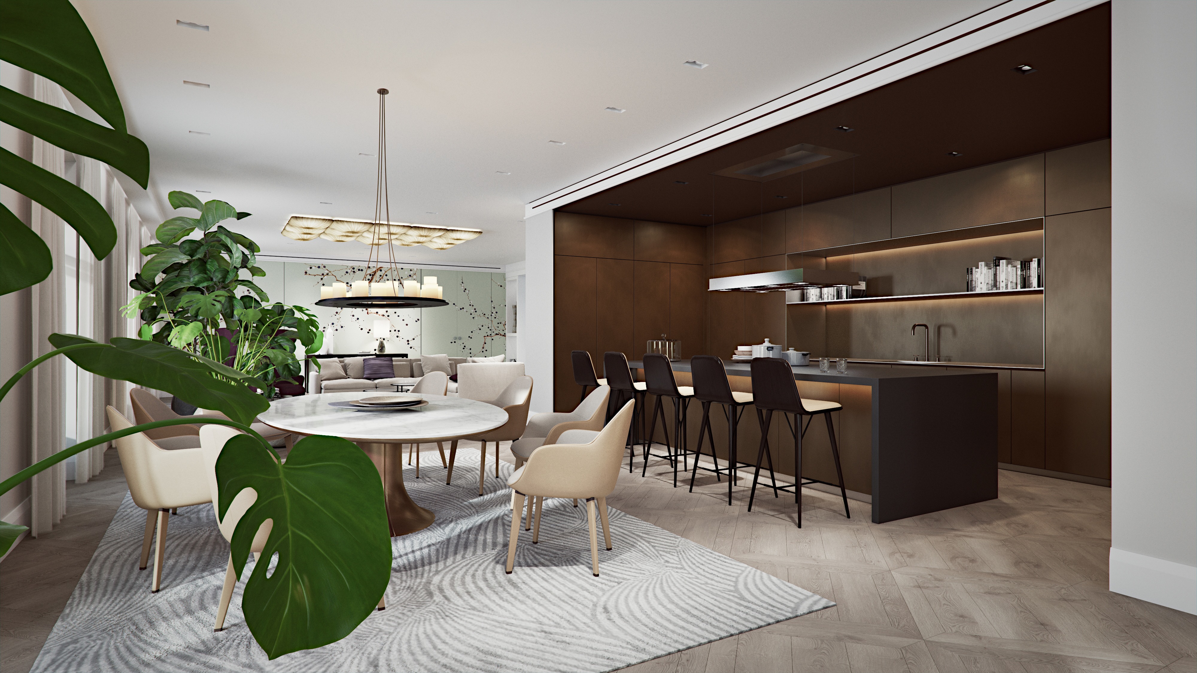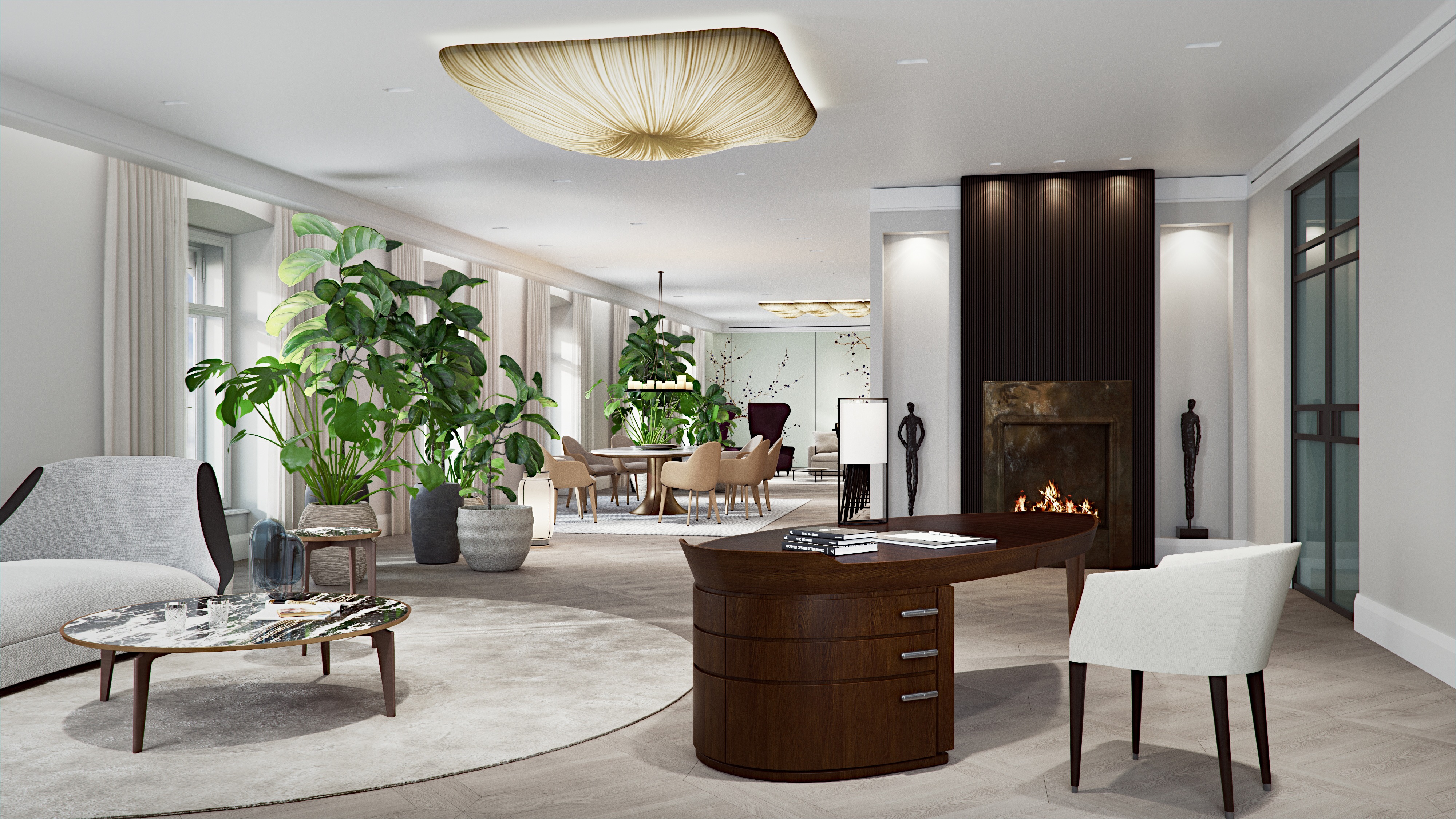 An elegant residence was fundamentally redesigned in a recently renovated Gründerzeit building, in the inner city of Vienna. The interior design concept was independently developed to suit the client’s specific vision. Various elements like wooden panels, stucco elements and precious surfaces, reflect the original style of the Gründerzeit era. We supported the design process right from the start, by creating a set of still images of the interior to show the material and furniture modification. To simplify the process of the final result, we also created 360° stereoscopic renderings to give the client a thorough and detailed idea of his flat’s appearance