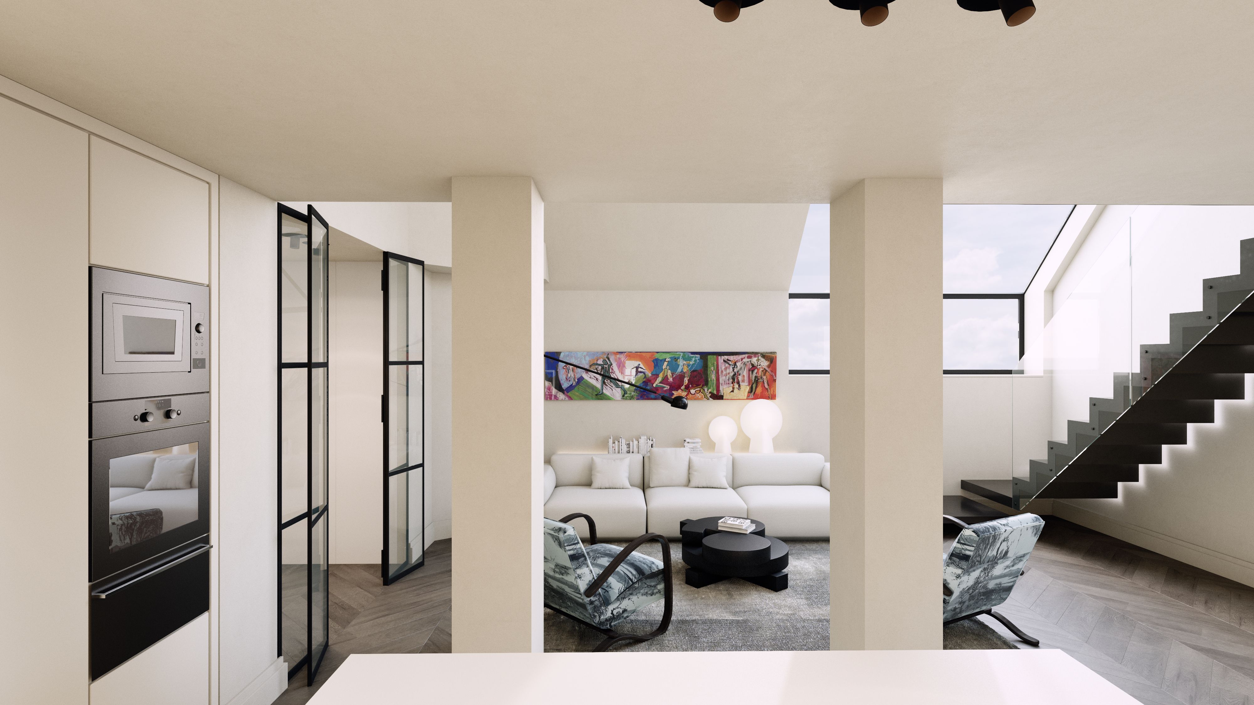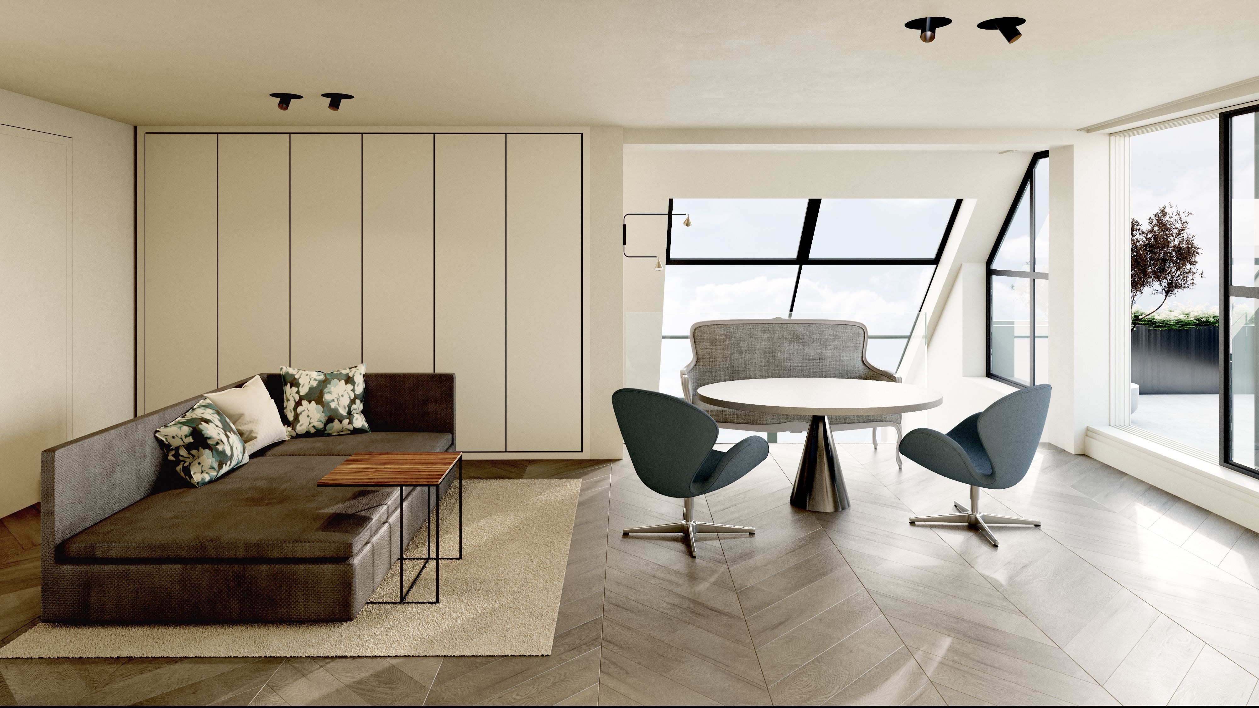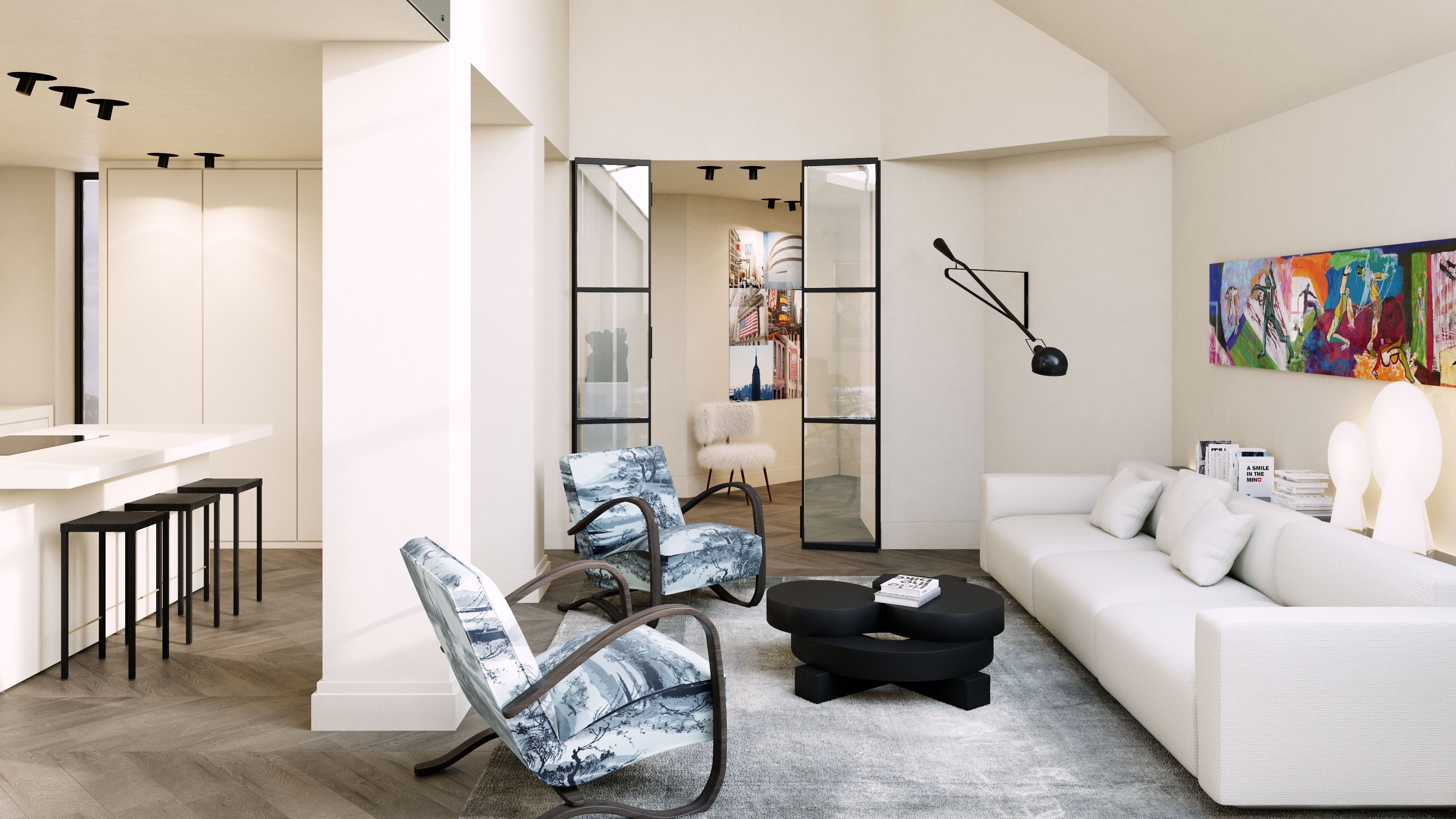 Designing an apartment is a creative process, we helped interior designer Christine Buzzi’s vision become reality. The rooftop apartment in Vienna’s city centre was completely remodelled, removing all existing structures creating a large open space with big industrial windows. We created visualizations which were used throughout the whole design process to demonstrate the spatial quality and use of lighting.