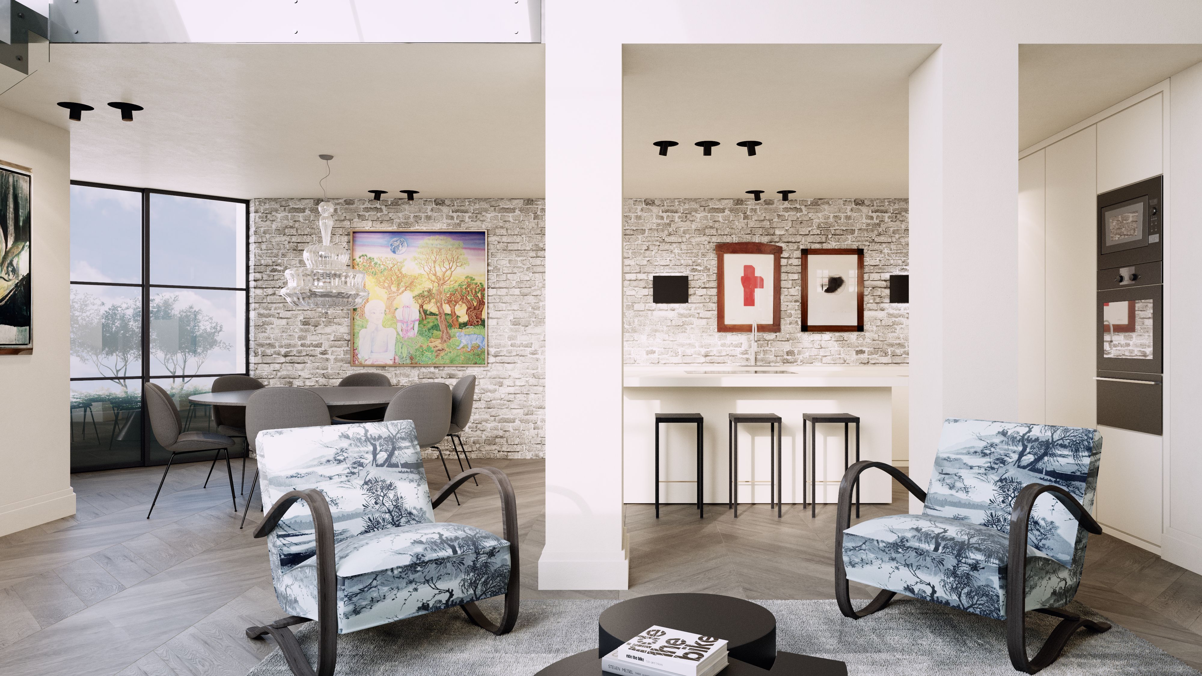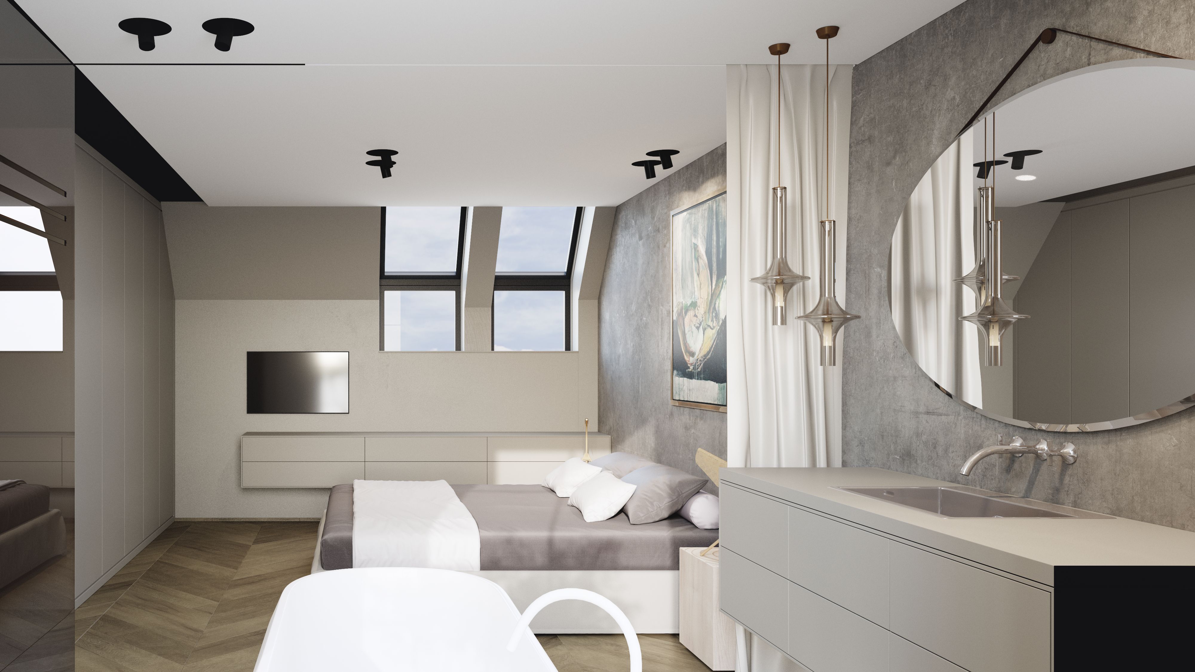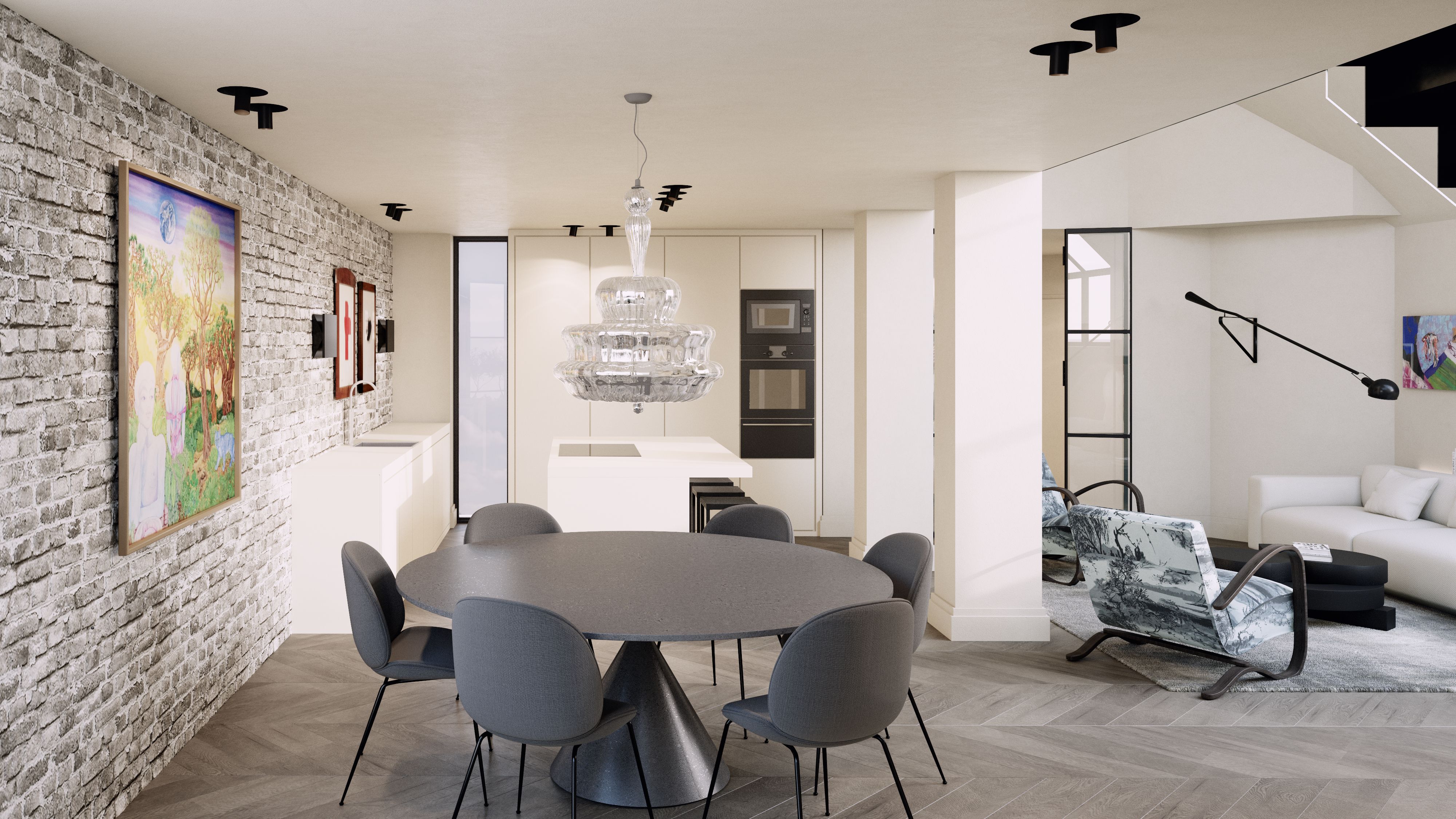 Designing an apartment is a creative process, we helped interior designer Christine Buzzi’s vision become reality. The rooftop apartment in Vienna’s city centre was completely remodelled, removing all existing structures creating a large open space with big industrial windows. We created visualizations which were used throughout the whole design process to demonstrate the spatial quality and use of lighting.